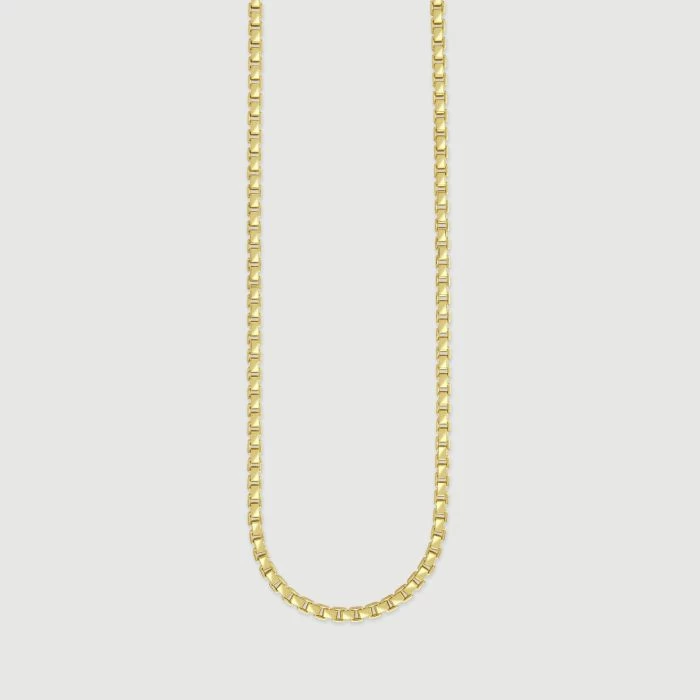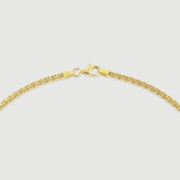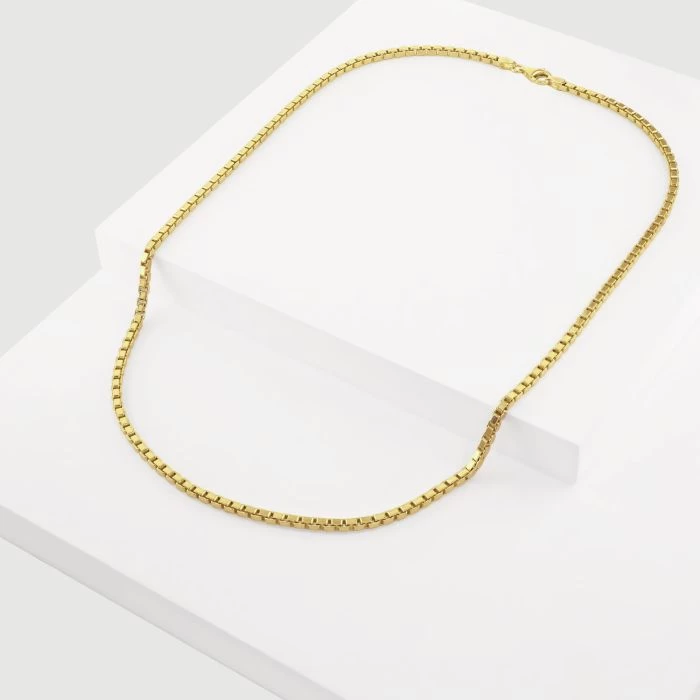 Timeless by name, classic by nature makes this luxurious 2.8mm Italian Sterling Silver box chain one of the most celebrated styles throughout the world. Characterised by its iconic geometric cube links and ascentuated with diamond cutting on the edges for refinement. Enhanced with a layer of real 9ct yellow gold for added luxury, our premium gold plated on Sterling Silver Chains have a much thicker layer than can be found in the jewellery market and therefore best value in addition to being a fantastic alternative to more expensive solid 9ct gold Chains.. Very versatile to wear by both Men and Women, either on it’s own or with a pendant. Perfect for casual wear and special occasions.