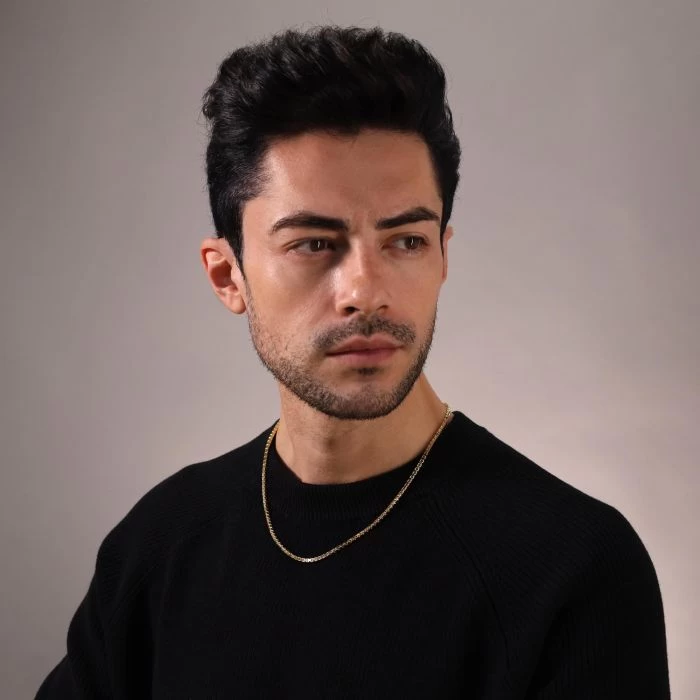 Our Male Model’s Neck Measures: 14.5″ Inches.