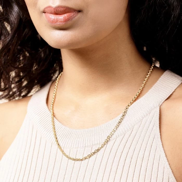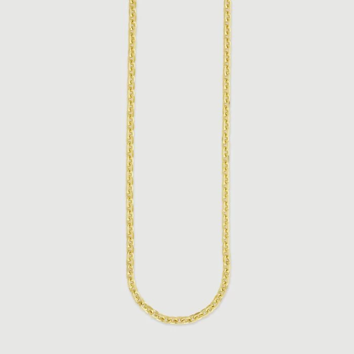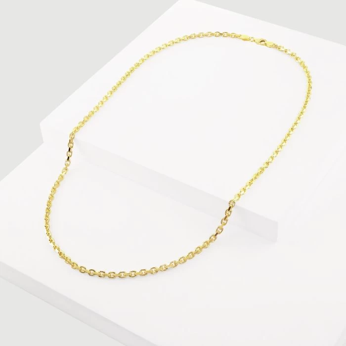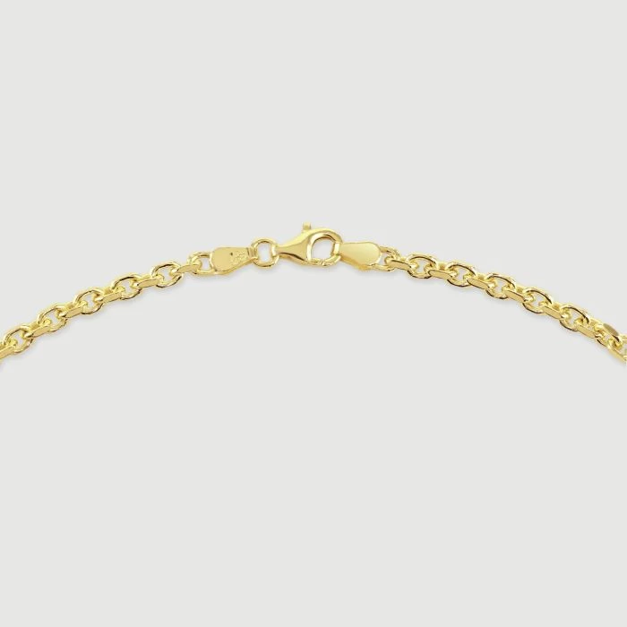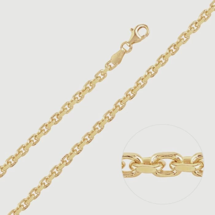 A symbol of strength and stability, this spectacular 3mm Italian Anchor chain has been made in solid Sterling Silver and nicely shaped with vertical diamond cut links to create a smooth clean facet on each side of the links. Polished to a high mirror polish and enhanced with a layer of real 9ct yellow gold for added luxury, our premium gold plated on Sterling Silver Chains have a much thicker layer than can be found in the jewellery market and therefore best value in addition to being a fantastic alternative to more expensive solid 9ct gold Chains. Nicely weighted and extremely durable to wear.
