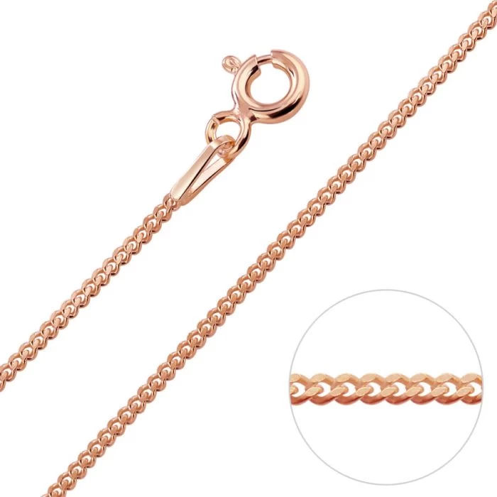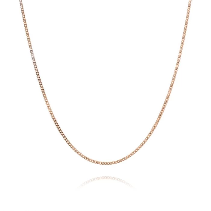 A timeless classic and one of our featured hot favourites, this pretty Italian 9ct rose gold plated on Sterling Silver Curb chain featuring its iconic diamond cut links where each link has been intricately faceted at an angle to create a stunning sparkle and sleek contrast. Finished in a high mirror polished finish. As one of the most popular and versatile chain styles, this chain should definitely be part of every jewellery wearer’s collection. Can be worn simply on its own or perfectly matched with any small and lightweight pendant of your choice. Enhanced with a 1 micron layer of real 9ct rose gold for added luxury. Rose gold is highly fashionable and regarded as one of the romantic of precious metals. Our premium gold plated on Sterling Silver chains have a much thicker layer than can be found in the jewellery market and therefore best value in addition to being a fantastic alternative to more expensive solid 9ct gold chains.
