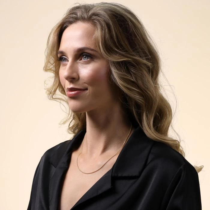 Our Female Model’s Neck Measures: 15″ Inches.