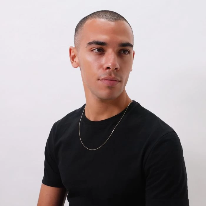 Our Male Model’s Neck Measures: 15.75″ Inches.