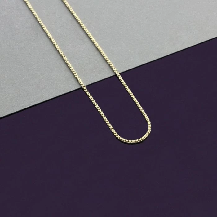One of our fantastic featured favourites, this lovely Italian 9ct yellow gold plated on Sterling Silver Box chain iconic for its geometric square shaped links should be part of every personal jewellery collection. Finished in a highly polished mirror finish for a superb shine. A very versatile chain used by many high profile designer brands for its sleek and modern feel. Can be worn simply on its own or matched with any light weight pendant of your choice. Enhanced with a premium layer of real 9ct yellow gold for added luxury. Our premium gold plated on Sterling Silver chains have a much thicker layer than can be found in the jewellery market and therefore best value in addition to being a fantastic alternative to more expensive solid 9ct gold chains.