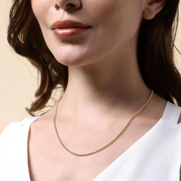 So sleek, stylish and contemporary, this stunning 9ct Yellow Gold Plated 2mm Sterling Silver Ball / Bead chain has been brilliantly crafted using a strand of round beads in a highly polished mirror finish. A popular jewellery piece that can be simply worn on its own or matched with a pendant. Enhanced with a premium layer of real 9ct yellow gold for added luxury. Our premium gold plated on Sterling Silver chains have a much thicker layer than can be found in the jewellery market and therefore best value in addition to being a fantastic alternative to more expensive solid 9ct gold chains.