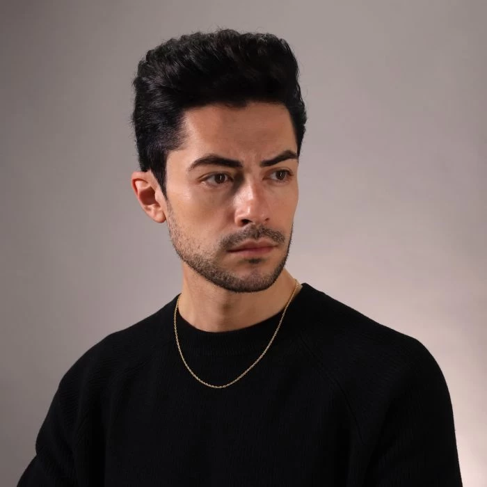 Our Male Model’s Neck Measures: 14.5″ Inches.