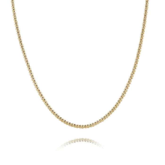 Glamorous, contemporary and distinctive, this super sexy Italian 2mm Sterling Silver Popcorn chain is one of our hot favourites for its characteristic profile resembling a strand of popcorns. This design evokes playfulness with a class of sophistication and will get you plenty of compliments. Lightweight and finished in a high mirror polish with a precious 9ct Yellow Gold Plate. The perfect choice for nights out and special occasions with that stunning outfit. Can be worn simply on its own or with any small light weight pendant of your choice. Enhanced with a premium layer of real 9ct yellow gold for added luxury. Our premium gold plated on Sterling Silver chains have a much thicker layer than can be found in the jewellery market and therefore best value in addition to being a fantastic alternative to more expensive solid 9ct gold chains.