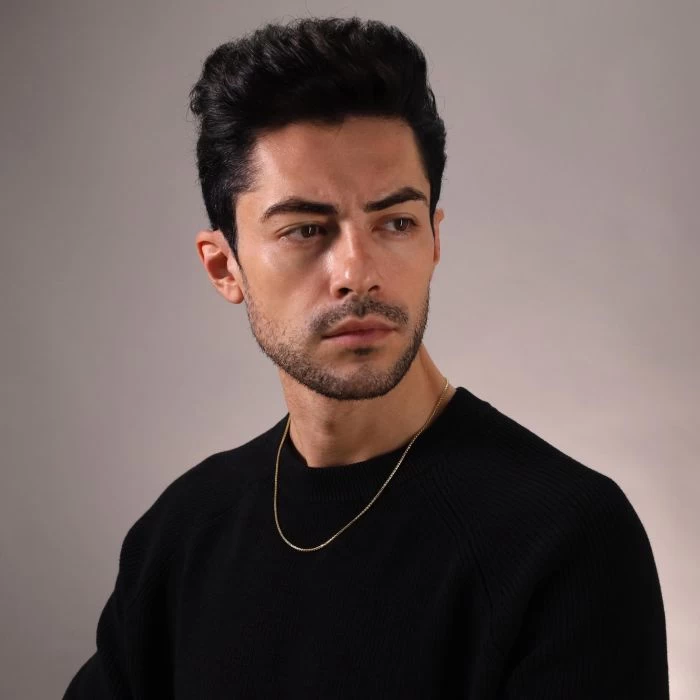 Our Male Model’s Neck Measures: 14.5″ Inches.