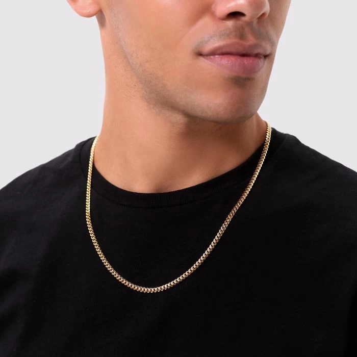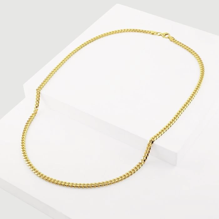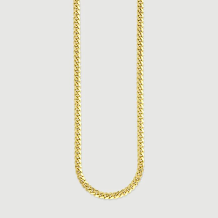 This super sleek and luxurious 4.2mm solid Sterling Silver Cuban chain features diamond cut links where each link has been intricately faceted at their curves to accentuate the iconic contours. Enhanced with a premium layer of real 9ct yellow gold for added luxury our premium gold plated on Sterling Silver chains have a much thicker layer than can be found in the jewellery market and therefore best value in addition to being a fantastic alternative to more expensive solid 9ct gold chains. Nicely weighted our premium Cuban Chains are extremely durable to wear every day.