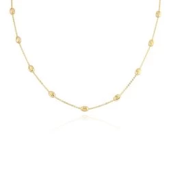 9ct Yellow Gold Plated Sterling Silver Oval Beaded Diamond Cut Trace Chain Necklace
