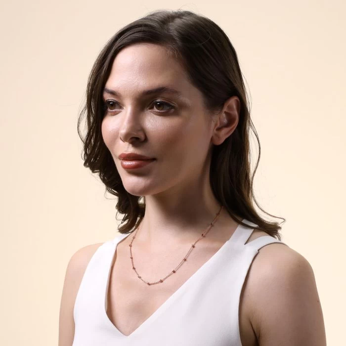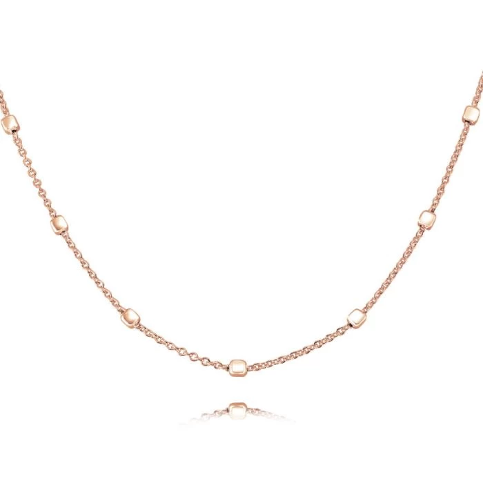 Be the first to review “Rose Gold Plated Sterling Silver 1.2mm Cable Chain Bobble Necklace With Cube Beads” Cancel reply
