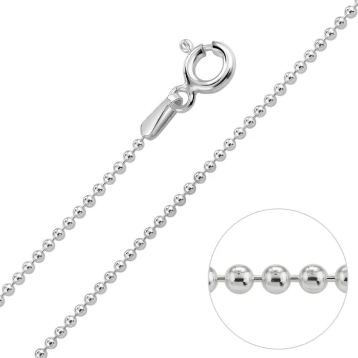 So sleek, stylish and contemporary, this stunning 1.2mm Sterling Silver Ball / Bead chain has been brilliantly crafted using a strand of pretty round beads in a highly polished mirror finish. A dainty jewellery piece which is very fashionable and can be worn simply on its own or with any small and light weight pendant.