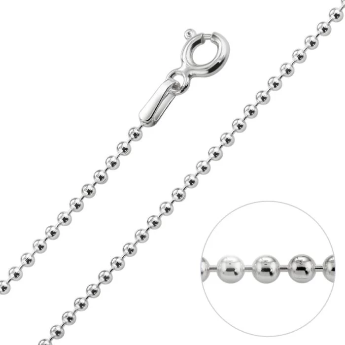 So sleek, stylish and contemporary, this stunning 1.5mm Sterling Silver Ball / Bead chain has been brilliantly crafted using a strand of pretty round beads in a highly polished mirror finish. A dainty jewellery piece which is very fashionable and can be worn simply on its own or with any small and light weight pendant.