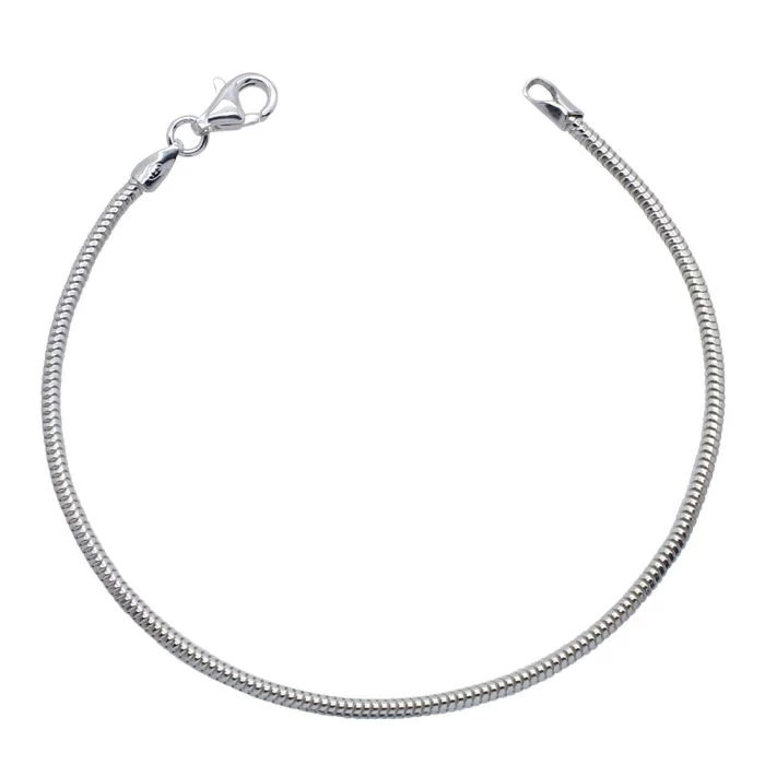 Sexy, sleek and smooth this contemporary Snake bracelet crafted in solid Sterling Silver features its characteristic tubular wavy links interlocked snuggly to form a gorgeous zig zag pattern reminiscent of a snake. This particular style is exclusive and an original Snake design owing to its natural flexibility which will not kink unlike its fellow rival Snake bracelets typically found elsewhere. Finished in a highly polished mirror finish enhances the visual textural look and makes this the perfect choice to be worn on its own or with sliding charms of your choice.