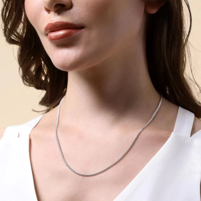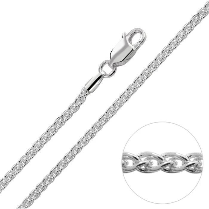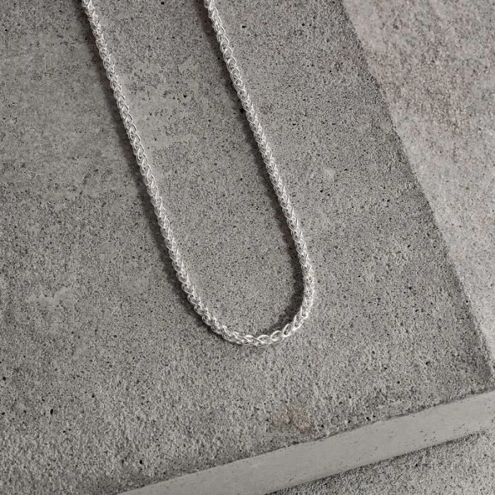 A chain with tradition and class this fantastic solid Italian 1.9mm Sterling Silver Spiga chain takes its name from the Spanish word Espiga which translates as wheat. In design the links are shaped in a figure of eight and cleverly interlocked creating a natural organic profile which resembles tips of wheat stalks. One of the most robust chain styles finished in a highly polished mirror finish for a smooth luxurious feel. Can be worn on its own or can be perfectly matched to showcase any pendant of your choice. This chain is perfect for everyday wear and will last for many years to come.