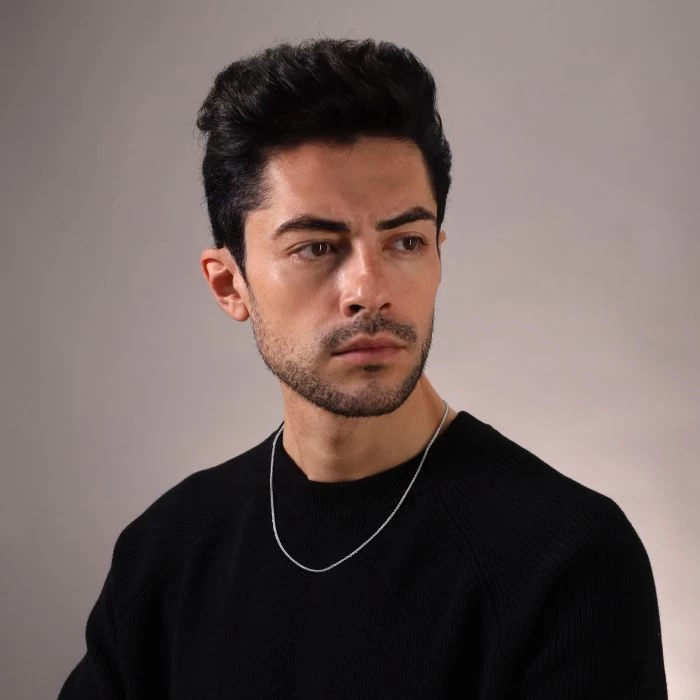Our Male Model’s Neck Measures: 14.5″ Inches.