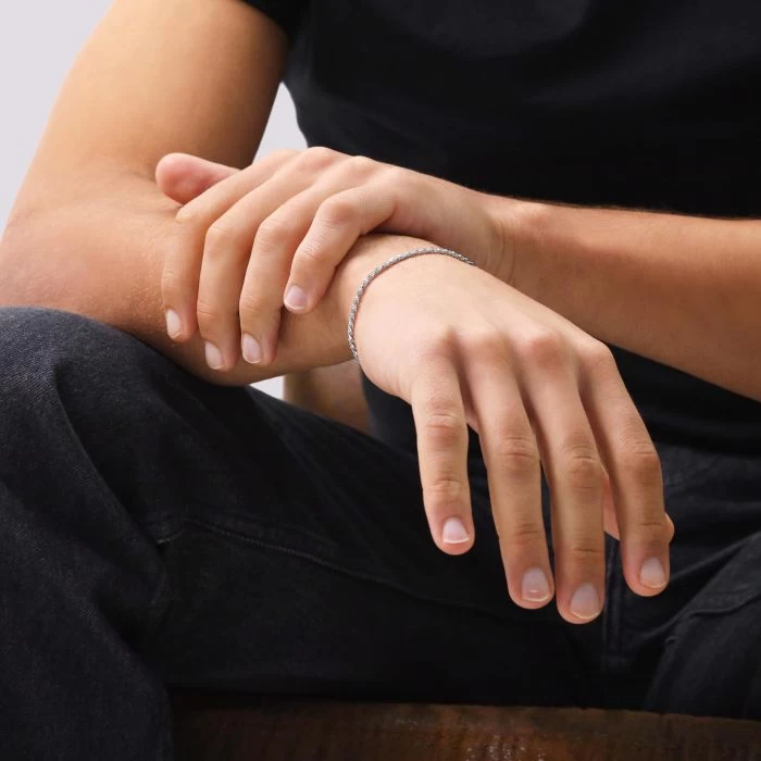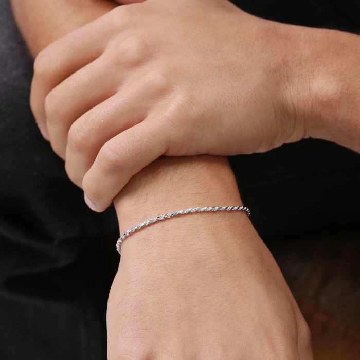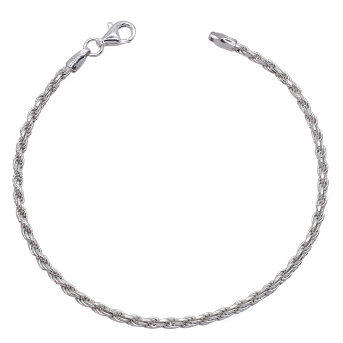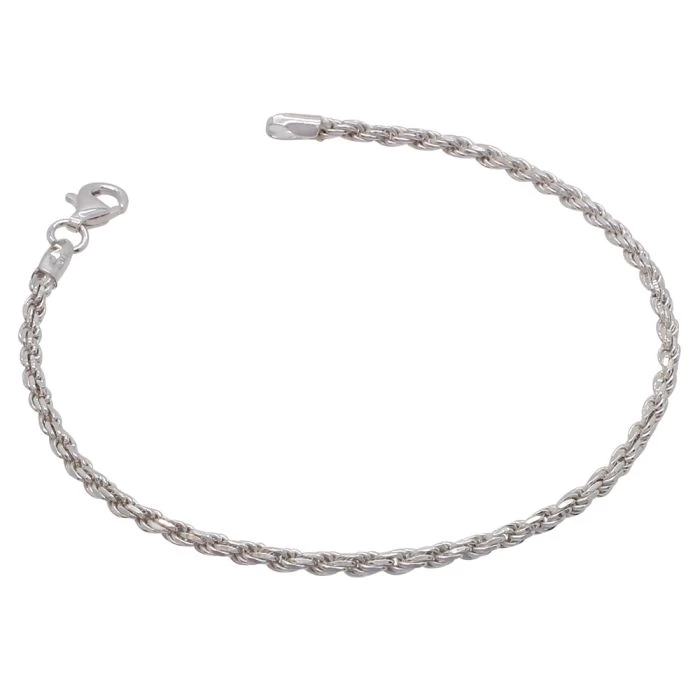 Timeless, classic and ultra stylish, this fantastic Rope bracelet crafted in solid Sterling Silver features a characteristic link design comprising of a series of interlinked rings which naturally form a twist pattern to form a profile resembling a rope chord. In addition to being made to a highly polished mirror finish the Rope links have been enhanced with clever diamond cutting to create a subtle facet on the edges which allows light to catch and reflect brilliantly. A versatile style for both ladies and men that can be worn as an everyday accessory. Available in 6.5 inches, 7 inches and 7.5 inches.