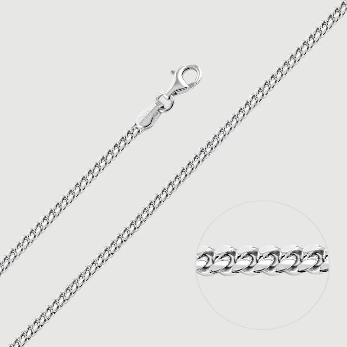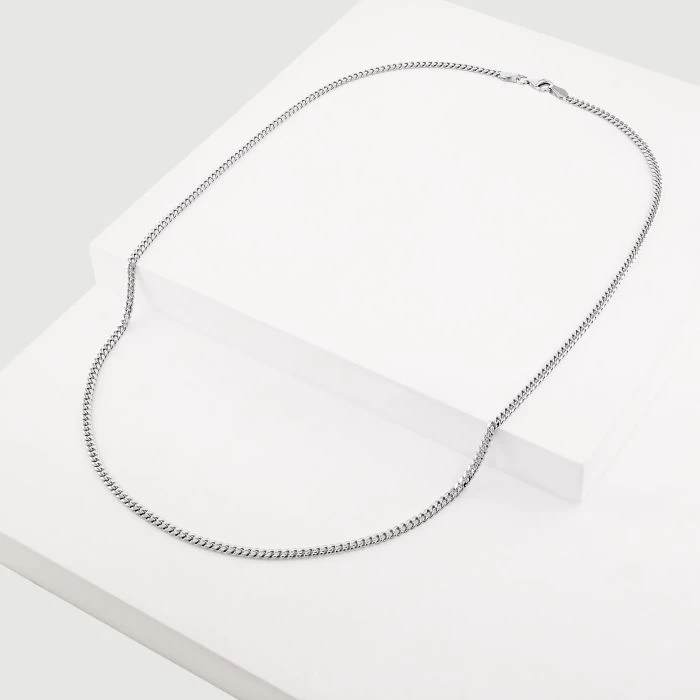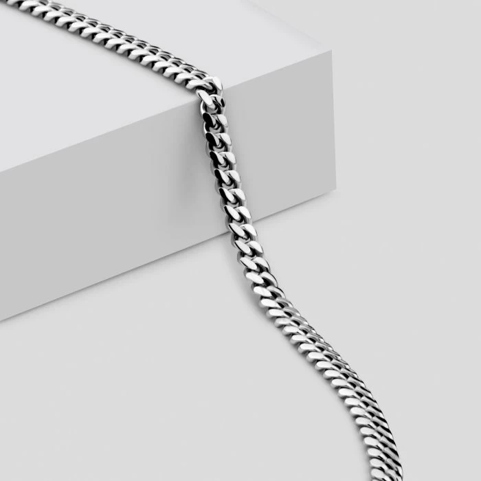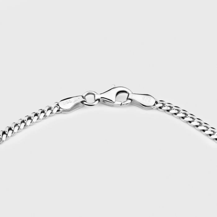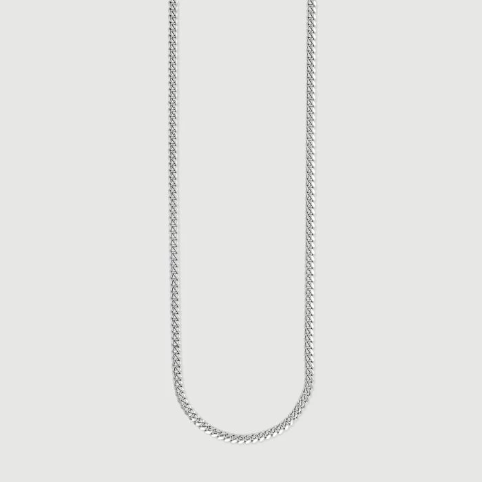 This super sleek and luxurious 2.7mm solid Sterling Silver Cuban chain features diamond cut links where each link has been intricately faceted at their curves to accentuate the iconic contours. Enhanced with a layer of Rhodium plating for protection against tarnish, each piece is individually polished by hand to achieve benchmark standards of ultra-high mirror polishing. Nicely weighted our premium Cuban Chains are extremely durable to wear every day.