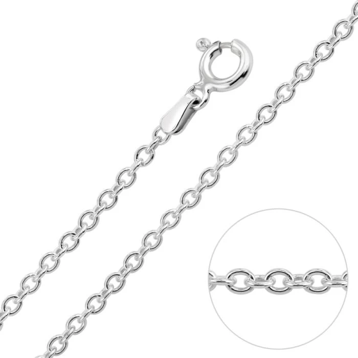 One of the most adorned and versatile styles this delightful 2mm Sterling Silver Trace chain also known as a Cable and Anchor Chain features a series of simple oval shaped links and finished in a high polished finish for a stunning shine. Can be worn as an everyday chain either on its own or with any pendant of your choice. We recommend a Trace chain to be part of every jewellery wearer’s collection.