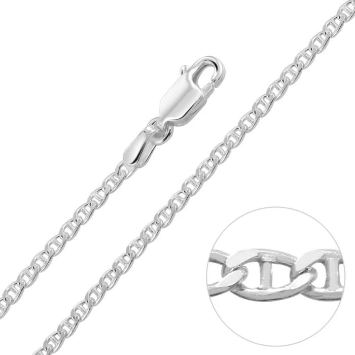 Wonderfully unique and playful this superb Italian 2mm Sterling Silver Mariner chain made famous by taking origin from Maritime, is characterised by a series of oval shaped single bar links. Each link has been diamond cut and finished in a highly polished finish to create a stunning sparkle. Perfect to wear as an everyday accessory and can be simply worn on its own or with any pendant of your choice.