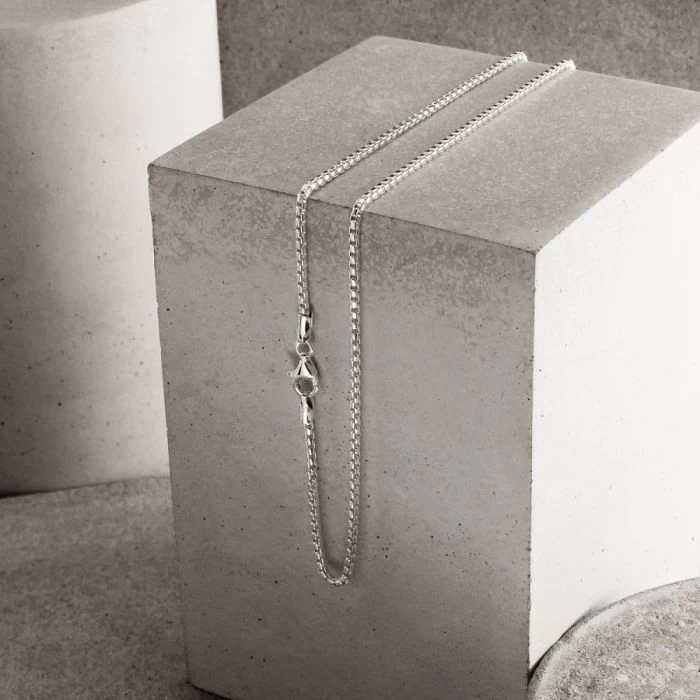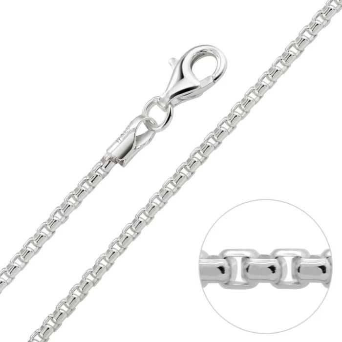 Another timeless classic this luxurious Italian 2mm Sterling Silver Rounded Box chain has been superbly crafted in solid Sterling Silver. Featuring the iconic square shaped links, this particular design has been uniquely enhanced with rounded edges for a much smoother look and feel. A versatile style worn by both ladies and men.