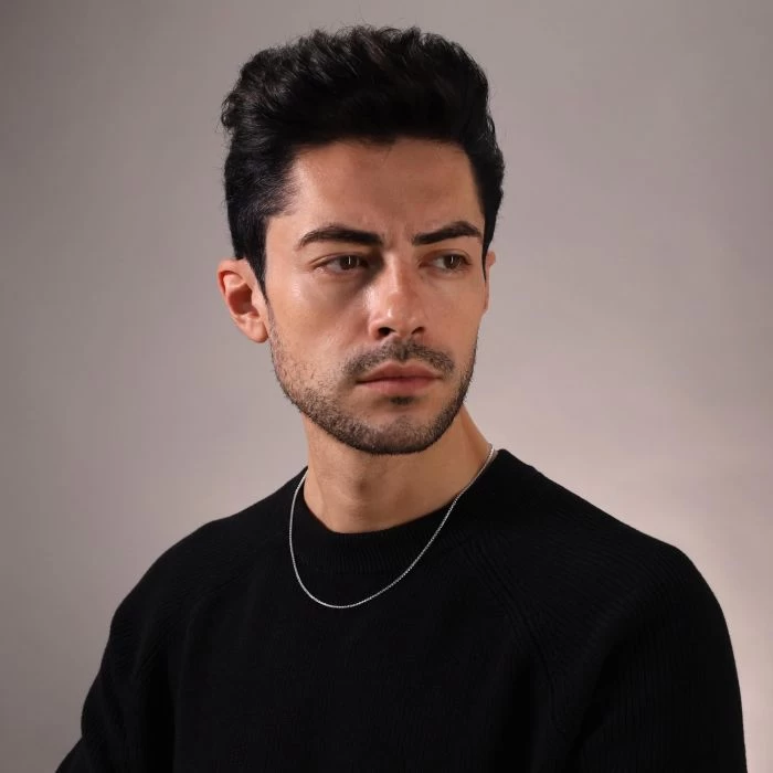Our Male Model’s Neck Measures: 14.5″ Inches.