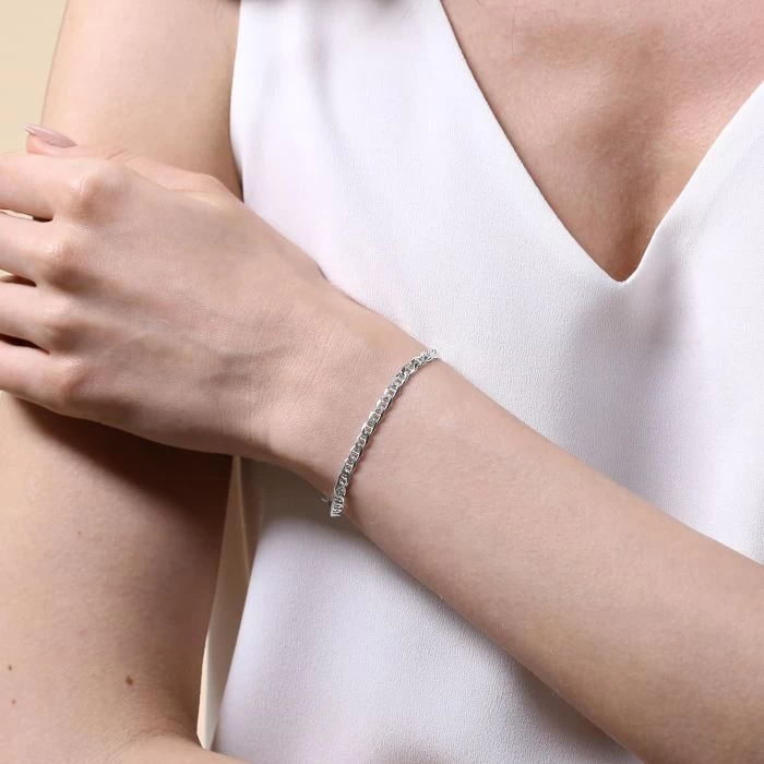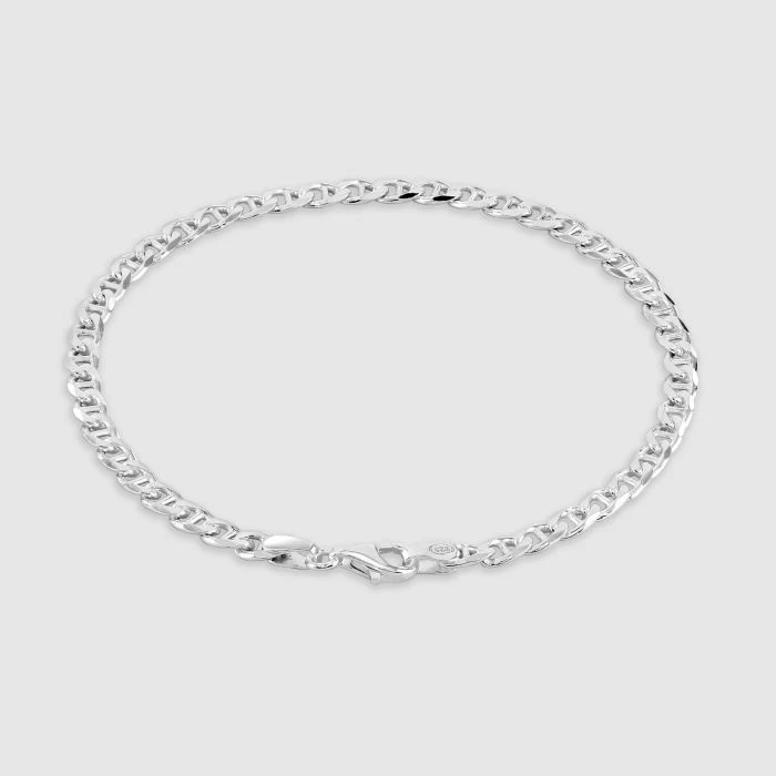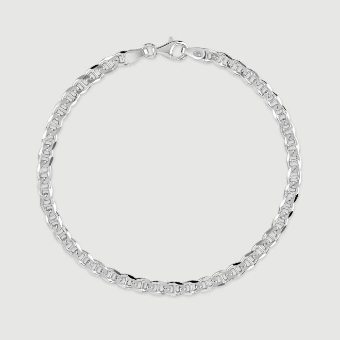 Ultra sleek and stylish this luxurious Italian 3.7mm solid Sterling Silver Mariner Bracelet made famous by its origin from Maritime is characterized by its series of oval shaped bar links. Each link has been intricately diamond cut with facets on the edges of each link which allows light to be captured and shine from different angles, complimented with a high mirror polish. Nicely weighted and extremely durable to wear every day.