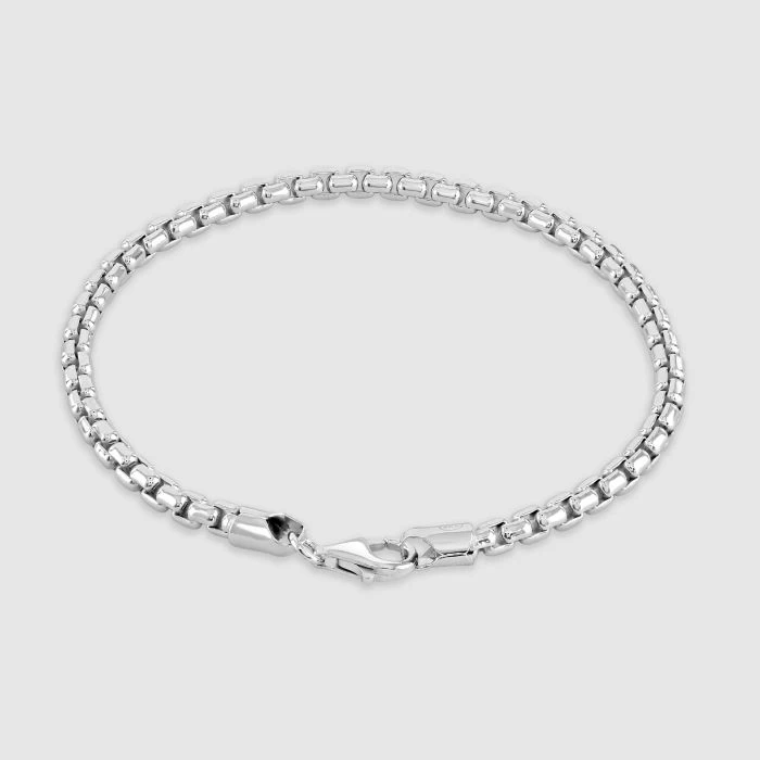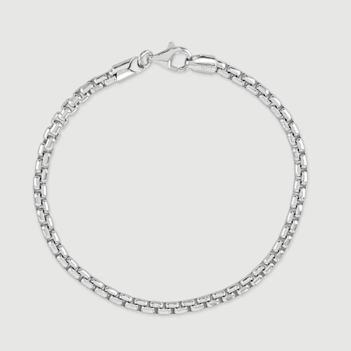Timeless, classic and ultra stylish, this luxurious Italian Rounded Box bracelet has been superbly crafted in solid Sterling Silver. Featuring the iconic square shaped links and made to a highly polished mirror finish the Rounded Box links, this particular design has been uniquely enhanced with rounded edges for a much smoother look and feel. Elevated with Rhodium plating to protect against tarnish and polished to a high mirror finish. Well weighted and perfect to layer with other bracelets or equally as a stand alone show piece to compliment your outfit.<