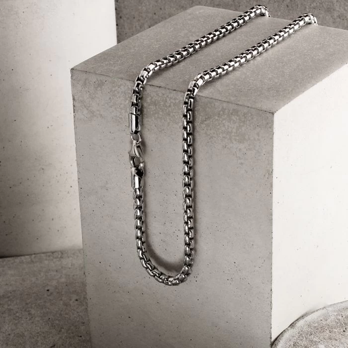Say no more if you’re looking for something different from what is out here in the jewellery world. This super sleek and heavy luxurious Italian 3.7mm solid Sterling Silver Box chain featuring the iconic square cubed shaped links has been uniquely crafted with rounded edges for a sexy smooth look and feel. Enhanced with a layer of Rhodium plating for protection against tarnish and finished to a high mirror polish. Nicely weighted and durable to wear as an every day jewellery piece which will last a lifetime.