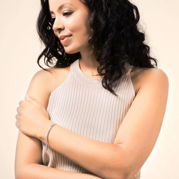 This super sleek and luxurious 4.2mm solid Sterling Silver Cuban bracelet features diamond cut links where each link has been intricately faceted at their curves to accentuate the iconic contours. Enhanced with a layer of Rhodium plating for protection against tarnish, each piece is individually polished to achieve benchmark standards of ultra-high mirror polishing. Nicely weighted our premium Cuban Chains are extremely durable to wear every day.