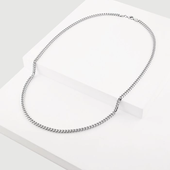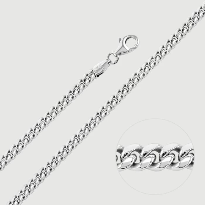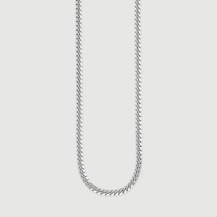 This super sleek and luxurious 4.2mm solid Sterling Silver Cuban chain features diamond cut links where each link has been intricately faceted at their curves to accentuate the iconic contours. Enhanced with a layer of Rhodium plating for protection against tarnish, each piece is individually polished by hand to achieve benchmark standards of ultra-high mirror polishing. Nicely weighted our premium Cuban Chains are extremely durable to wear every day.