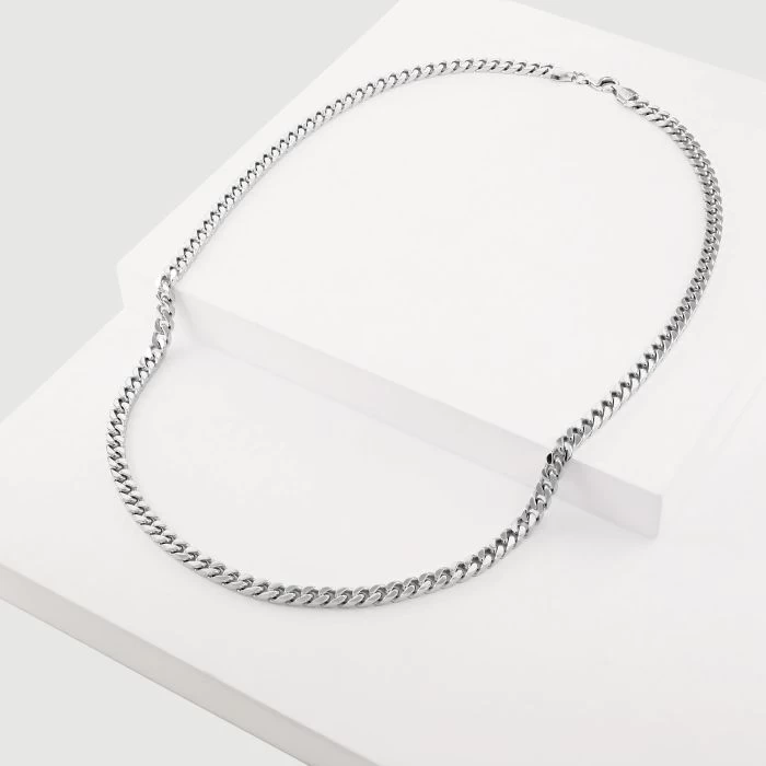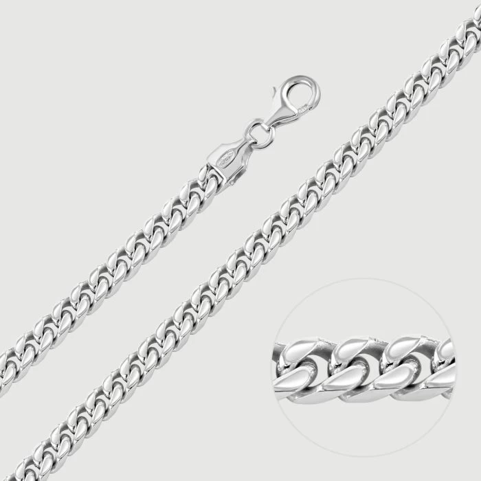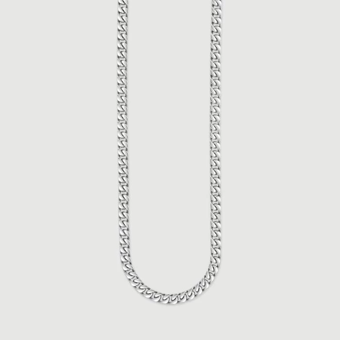 This super sleek and luxurious 4.2mm solid Sterling Silver Square Curb chain features diamond cut links where each link has been intricately faceted at their curves to accentuate the iconic contours. With flat square edge, our Square Curb Chain is enhanced with a layer of Rhodium plating for protection against tarnish. Each piece is individually polished by hand to achieve unrivalled benchmark standards of ultra-high mirror polishing. Nicely weighted our premium Square Curb chains are extremely durable to wear every day.