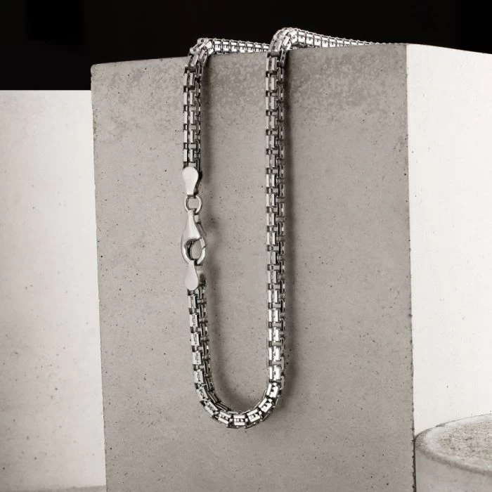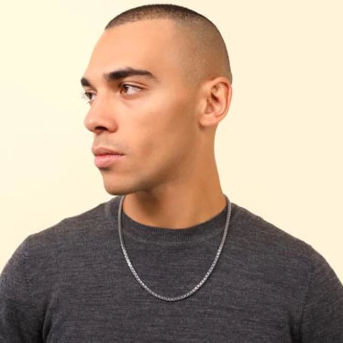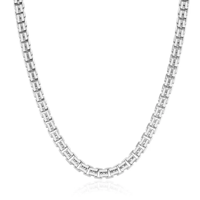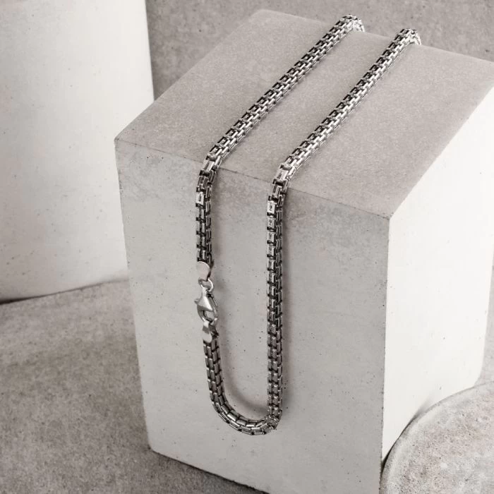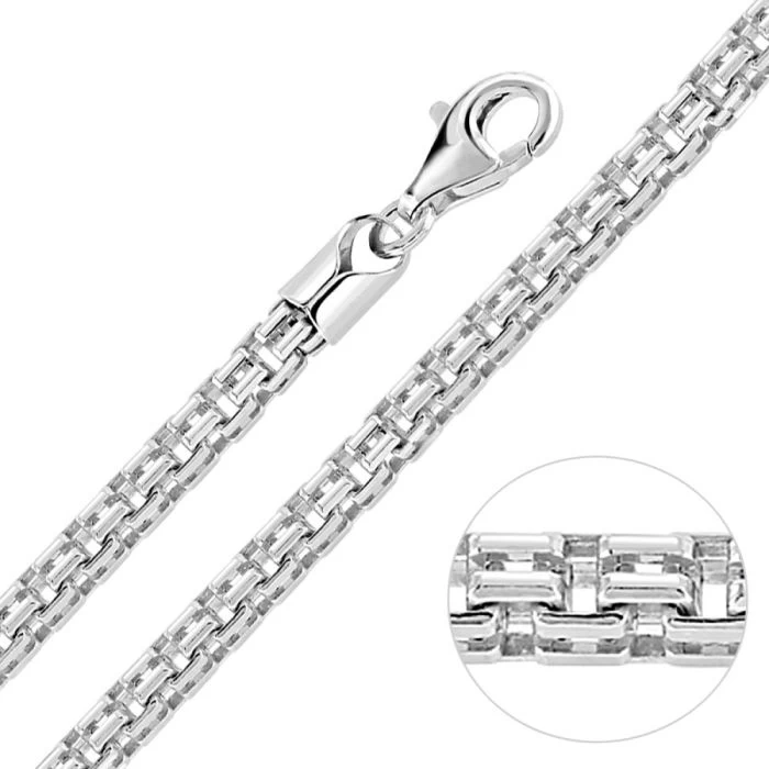 Slicker than your average, this luxurious 4mm diamond cut Italian Double Box chain is perfect if you’re looking for something that little different. Made in solid Sterling Silver and originating from the fantastic classic box chain design, this version has been nicely elavated with a groove cut in the centre each side of the link creating a double box appearance. Finished with a premium layer of Rhodium plating to protect against tarnish and finished in a high mirror polish.