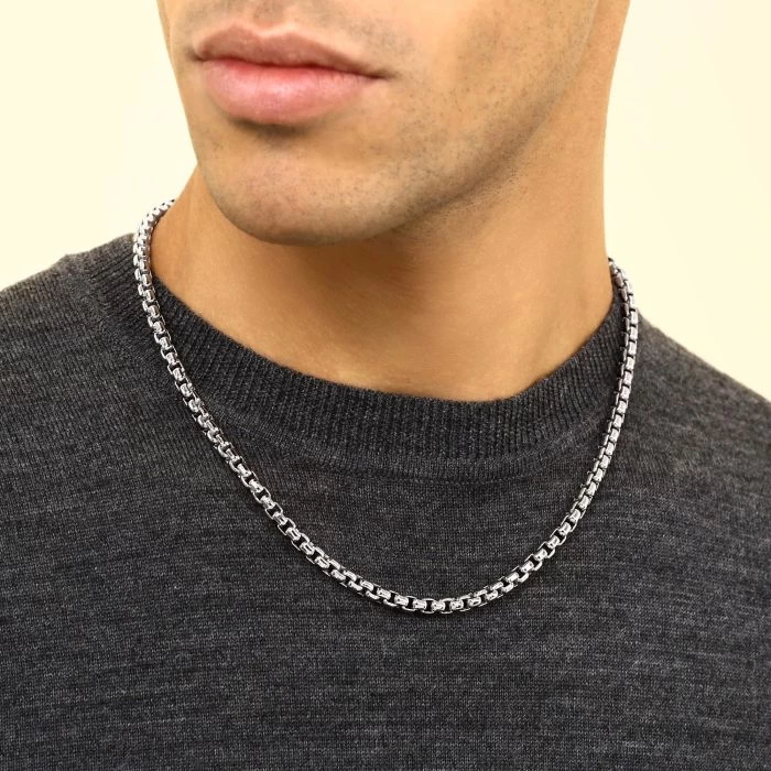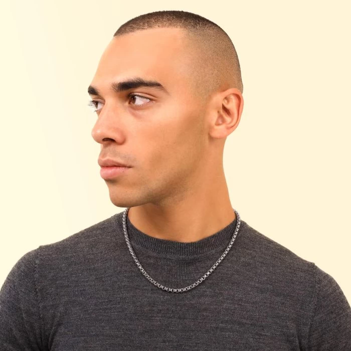Say no more if you’re looking for something different from what is out here in the jewellery world. This super sleek and heavy luxurious Italian 5.2mm solid Sterling Silver Box chain featuring the iconic square cubed shaped links has been uniquely crafted with rounded edges for a sexy smooth look and feel. Enhanced with a layer of Rhodium plating for protection against tarnish and finished to a high mirror polish. Nicely weighted and durable to wear as an every day jewellery piece which will last a lifetime.