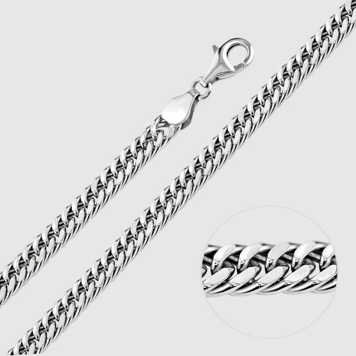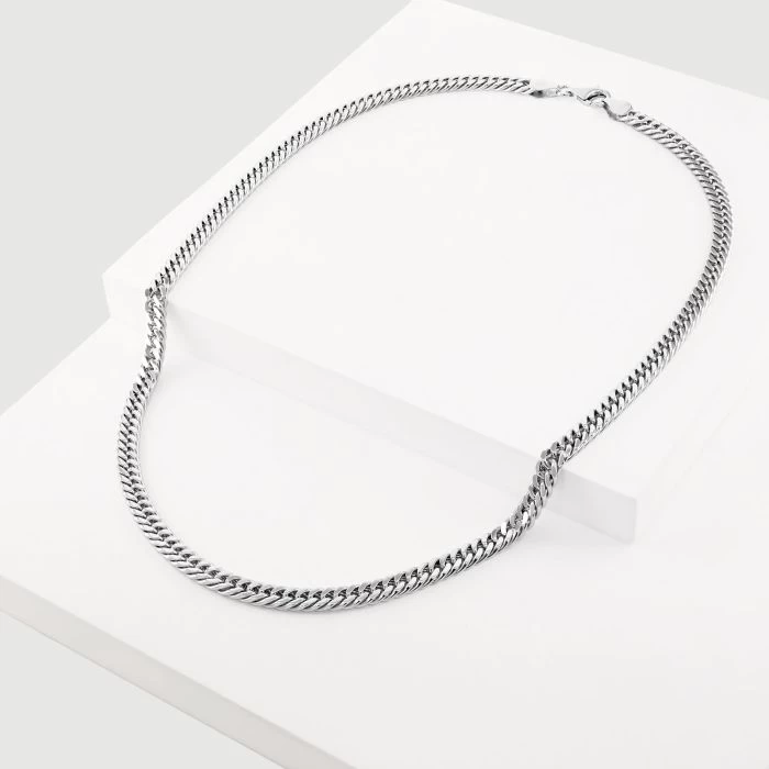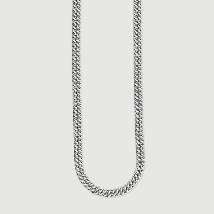This super sleek and luxurious 5.7mm solid Sterling Silver Double Curb chain features diamond cut links where each link has been intricately faceted at their curves to accentuate the iconic contours. With closer links and deeper than our standard Curb Chain, our Double Curb Chain is enhanced with a layer of Rhodium plating for protection against tarnish. Each piece is individually polished by hand to achieve unrivalled benchmark standards of ultra-high mirror polishing. Nicely weighted our premium Square Curb chains are extremely durable to wear every day.