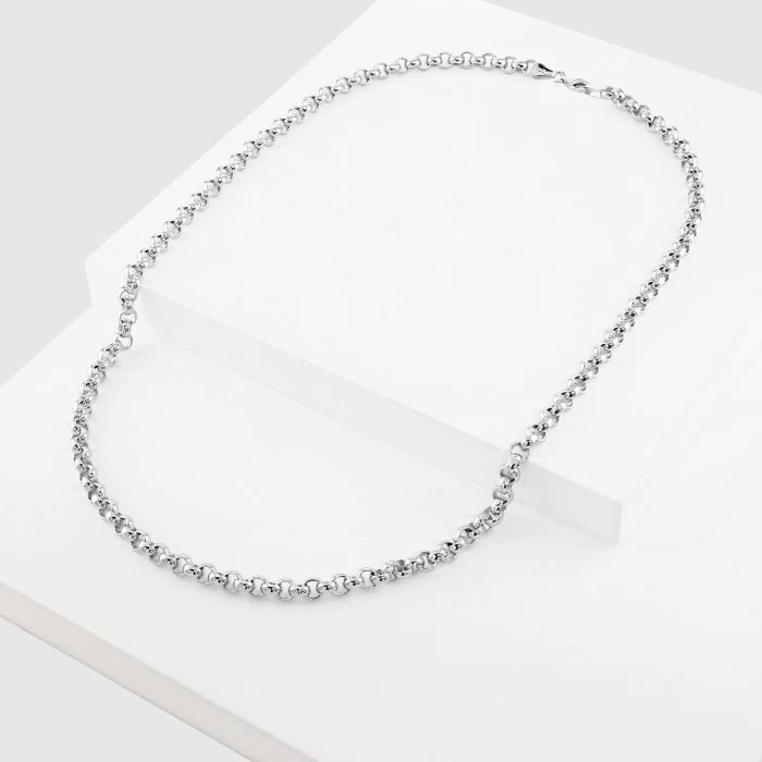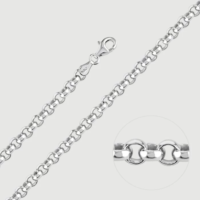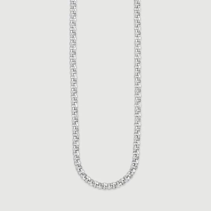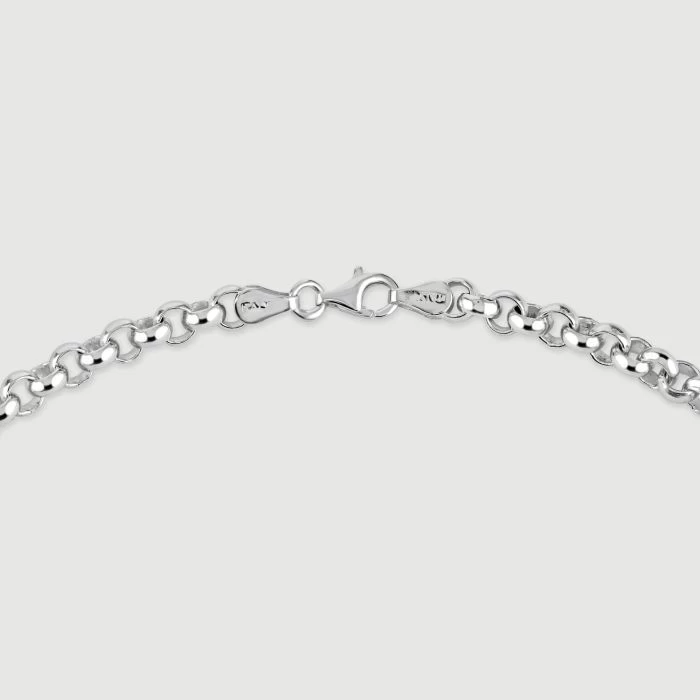 Traditional and timeless, this superb 5mm solid Sterling Silver Belcher chain also known as the Rolo chain (Italian for round) featuring its iconic round and concaved shaped links is one of our featured hot favourites for its simply look and versatility. Finished in a stunning mirror-polished finish and can be worn either as a stand alone piece or will perfectly match with any pendant of your choice.