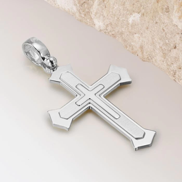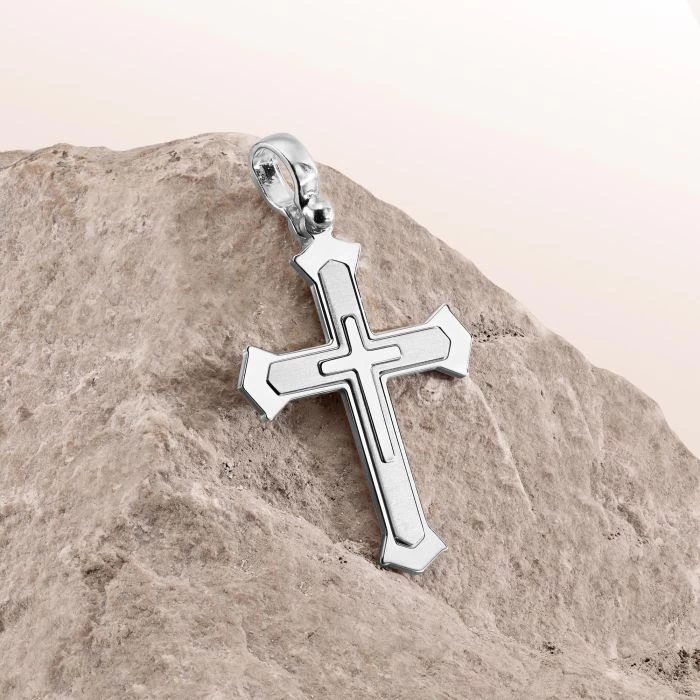 When modern design celebrates tradition in a way that’s simply elegant and stylish, we’re able to enjoy wearing jewellery that’s truly timeless. This lovely cross pendant is made from solid Sterling Silver with its shape derived from the traditional ‘Cleche’ cross. Exceptionally made to the highest quality, the design itself encompasses an inner section contrasting nicely with the middle section which has been kept silver in a polished finish, to create a stunning finish.