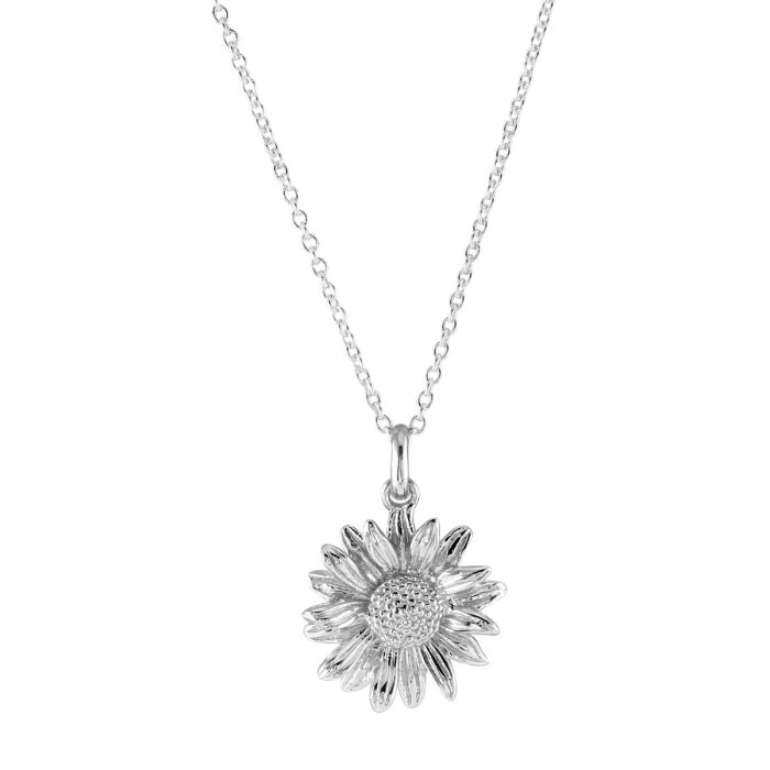 Whether you’re lucky enough to be born in September or simply love the Aster flower, this life like solid Sterling Silver Aster Flower Pendant from our exclusive Floral Pendant Collection is paired with our 1.5mm Cable Chain and will brighten up your day or night. Complimented with vivid detailing of the centre florets to the outer petals and finished with a precious Rhodium Plating this eye-catching Sterling Silver Aster Pendant is a miniature masterpiece. Stamped 925 on the reverse with a high mirror polish, our Aster Flower Pendant Necklace is luxurious in its entirety.