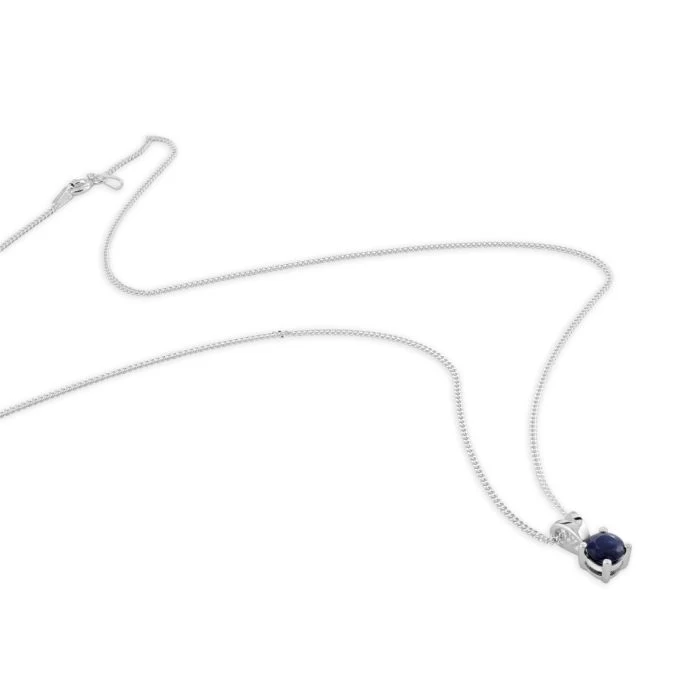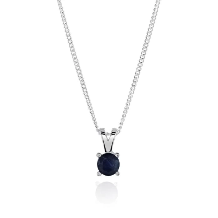 This cute 5mm Round precious Blue Sapphire Gemstone pendant, said to be the lucky Gemstone for those born in September, is brilliantly faceted and encased in a solid Sterling Silver setting. This genuine Blue Sapphire is held securely with 4 claws in a solid Sterling Silver jewellery setting. Designed in a way that allows for natural light to pass through the jewellery setting highlights the Blue Sapphire’s most attractive and naturally captivating Dark Blue colours -an undeniably alluring treasure of the Earth.Â